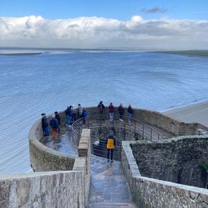 小学校低学年の子供と2人で参加。冬のオフシーズン、かつ平日のモンサンミッシェルは静かで穏やかでした。レストランなども閑散としておりオムレツが有名なラメールプラールも予約なしで待つことなく入ることができました。パリからのバスでの移動は片道3〜4時間でなかなか長かったですが、窓を流れるフランスの農村の風景もよかったです。行き帰りともに途中の休憩所で、パンなどの軽食が買えます。ツアーにはいろんな国の方が参加しており、全て英語での説明でしたが、添乗員は親切で拙い英語でもこちらから相談すればどうにかサポートしようと寄り添ってくれました。帰りのバスの休憩時にバスに戻っていない人が2人いたのですが、運転手のカウントミスで出発しそうになり、あわや2人を置き去りにしてしまいそうな一面がありました。きっちりした管理になってないかもしれないので、休憩時は余裕を持って動きギリギリにならないようバスに戻ることをお勧めします。