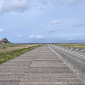 モンサンミッシェル→駐車場までは徒歩で45分、シャトルバスで20分ほどなので、私たちは14:45ぐらいにモンサンミッシェルを出発し、橋を歩いて駐車場に向かいました。広々とした景色がとても綺麗なので、歩いて橋を渡るのもオススメです。