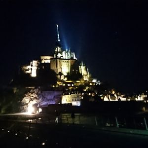 元旦にモンサンミッシェルに行きましたが、あいにくの曇り空、霧の中ので余り期待通りでないとがっかりしていました。夕食の後夜空にライトアップされたモンサンミッシェルを見て、とても素敵すぎて、帰りも何回も振り返りながら後にしました。