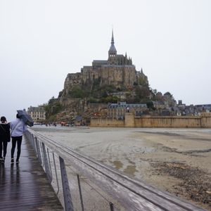初めてモンサンミッシェルに行きました。実際に観るとやはり荘厳です。途中立ち寄りのオンフルールは、本当に写真撮る時間しかないので、ここにこだわる方は、早めにバス降りてお目当ての場所に行くべきです。モンサンミッシェルは、冬季、しかもフランス国鉄ストライキ中だったので、ガイドさんも驚くような人の少なさだったそうです。お陰でレストランも空いていたし、見学も全く待たずに回れました。私も日帰りか、泊まりか迷いましたが、今回は日帰りで十分すぎるほど時間ありました。