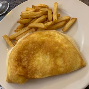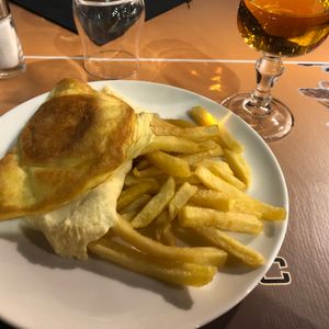 食事はツアー用に大変お安くしてもらえてて、スープ、オムレツ、アップルケーキ、シードルが付いて、たった€20でした。私たちは島外のお店を選びましたが、島外は少しきぅおりがあり、ライトアップのモンサンミッシェルが遠かったので、島内のレストランにすれば良かったと後悔しました。でも、さっさと食べて、シャトルとのタイミングが合えば、また戻って写真を撮ることができたのでよかったです。