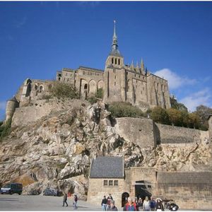 パリから日帰りはお勧めしないという在仏の友人の意見に従い1泊ツアーに申し込みました。参加当日は大型バス2台で行く大人数で9割ほどが日帰りでした。手配されたホテルはHotel Vertで、アメニティはリキッドソープのみ、部屋にセーフティボックス、冷蔵庫、ポット等はありません。2日間とも生憎の雨と強風でしたが、近くにChristian Dior生誕の地・グランヴィルがあることから、「この曇りはDiorカラー(グレーはDiorの代表色の一つ)ですよ」と現地ガイドの濱口さん、個人的に依頼したくなる知識豊富な良い仏政府公認ガイドさんが担当で良かったです。可能なら大潮の日を狙って行けると良いのですが、それでも夕方、夜景、早朝と、観光客の少ない静寂した雰囲気の中で巡礼地に思いを馳せながらそこにゆったりと身を置くひとときは日帰りには無い魅力です。現地でエクスカーションを申し込める日本人デスクもあります。