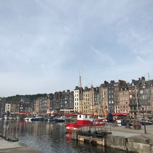 ・途中、休憩も兼ねてオンフルールという小さな港町に立ち寄りました。30~40分程度の休憩なのであまり遠くへは行けませんが、バスの停車場所から歩いてすぐのところにかわいらしい外観の建物が並んだハーバーがあり、散歩するだけで楽しい気持ちになれました。バスを降りてすぐ近くにトイレ小屋があります。何十人もの団体で向かうので基本的に混みます。利用される方はバスを降りたらすぐに向かうことをお勧めします。利用は有料でした。
