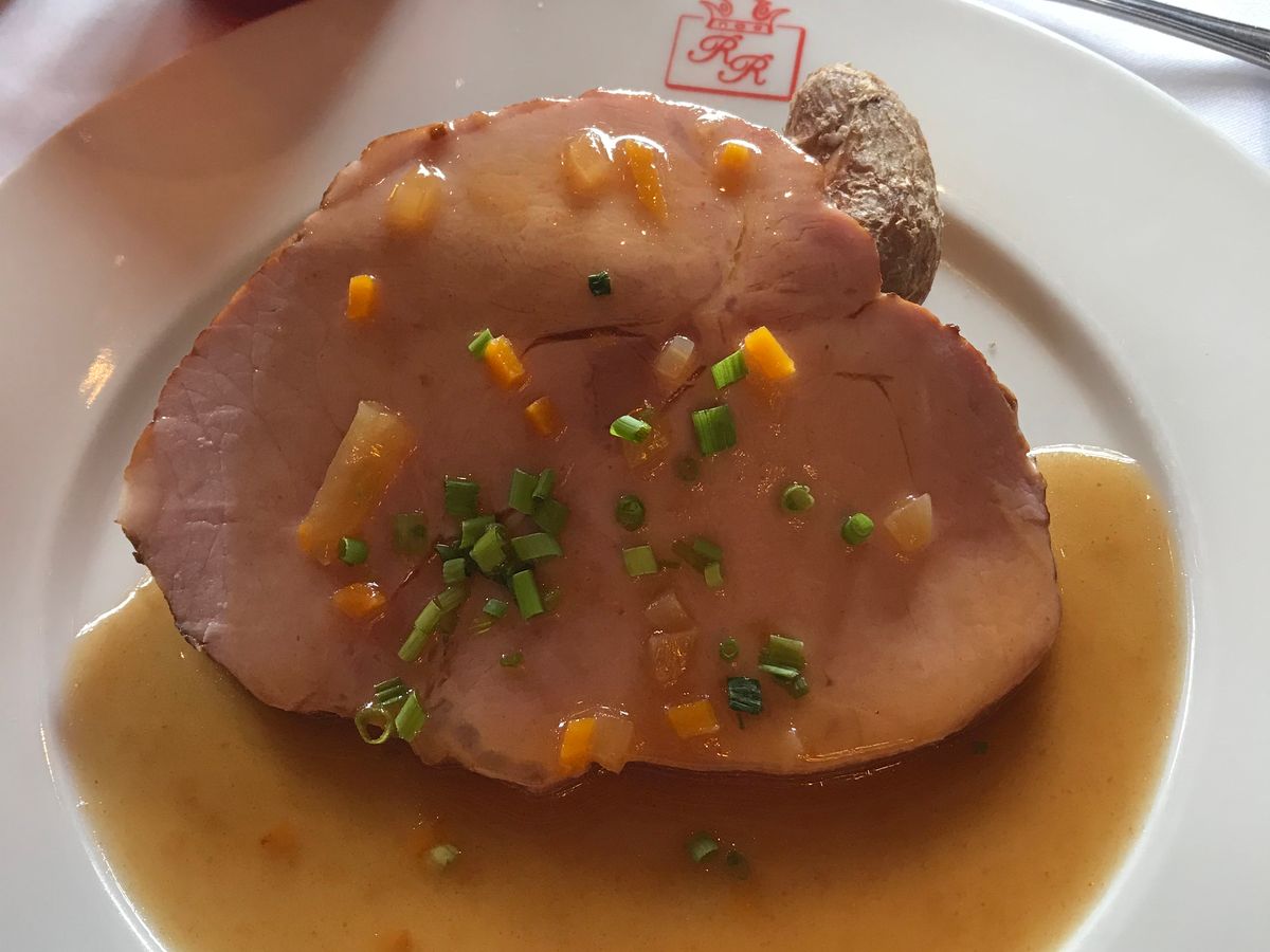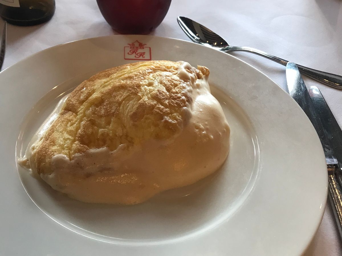 ランチはふわふわオムレツとタラとアップルパイです。正直美味しくはないですが、名物を食べてみるという意味で価値はあると思います。