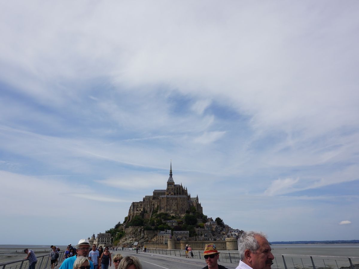 行った時はこれまでにない暑さ。とパリでも言われていたくらいの異常な1週間の時でしたが、モンサンミッシェルは涼しく、ほぼ薄い長袖で過ごせました。昼食がなかなか配膳されず、その時間がもったいなかったのが残念でしたが、その他はガイドさんも詳しく、買い物時間もとれました。お一人の方も年配の方も新婚の方もファミリーと、様々な方参加されてました。最寄りのピラミッド駅も便利です!
