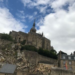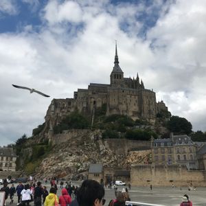 到着後、レストランでランチを頂きました。前菜が名物のオムレツ、メインがお魚料理でデザートにリンゴのタルトをいただきました。どれもとても美味しかったです!(最初にシードルかりんごジュースも頂けます)食事の後は無料シャトルバスで島まで移動し、ガイドさんと一緒に修道院まで。とにかく登り坂が続き大変でしたが、一番上までたどり着いた時は本当に感動しました。その後は解散して自由行動、バスまで各自で戻りますが、かなり観光客が多く、時間が限られていたのでゆっくりお店や教会を見て回ることは難しかったです。島の滞在はとても短いですが、1人で行くとなるとなかなか大変なのでツアーにお任せはとても気楽で良かったです!往復どちらもSAでトイレ休憩があり、そこで飲食物を購入も可能でしたので、パリ到着後の夜ご飯も心配せずに済みました。