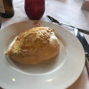ランチはふわふわオムレツとタラとアップルパイです。正直美味しくはないですが、名物を食べてみるという意味で価値はあると思います。