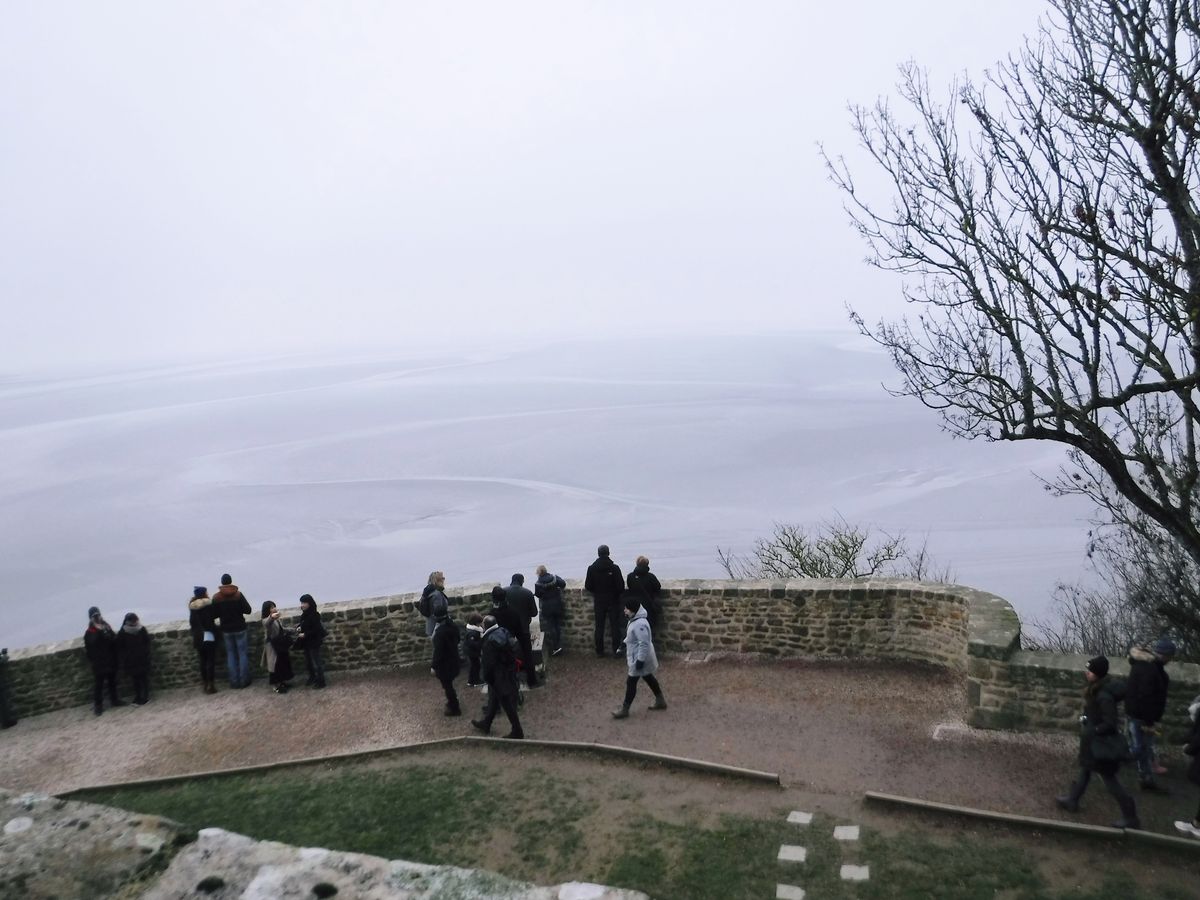 冬場はモンサンミッシェルの橋は強風なのでフード付き上着や耳あて、手袋は必要です。