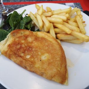 モンサンミッシェルに入る前に立ち寄るレストランで頂くオムレツはラメールプラールではありませんが、十分美味しいオムレツです。