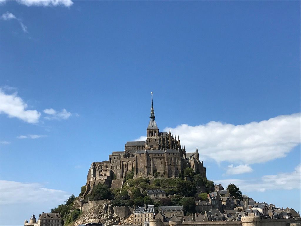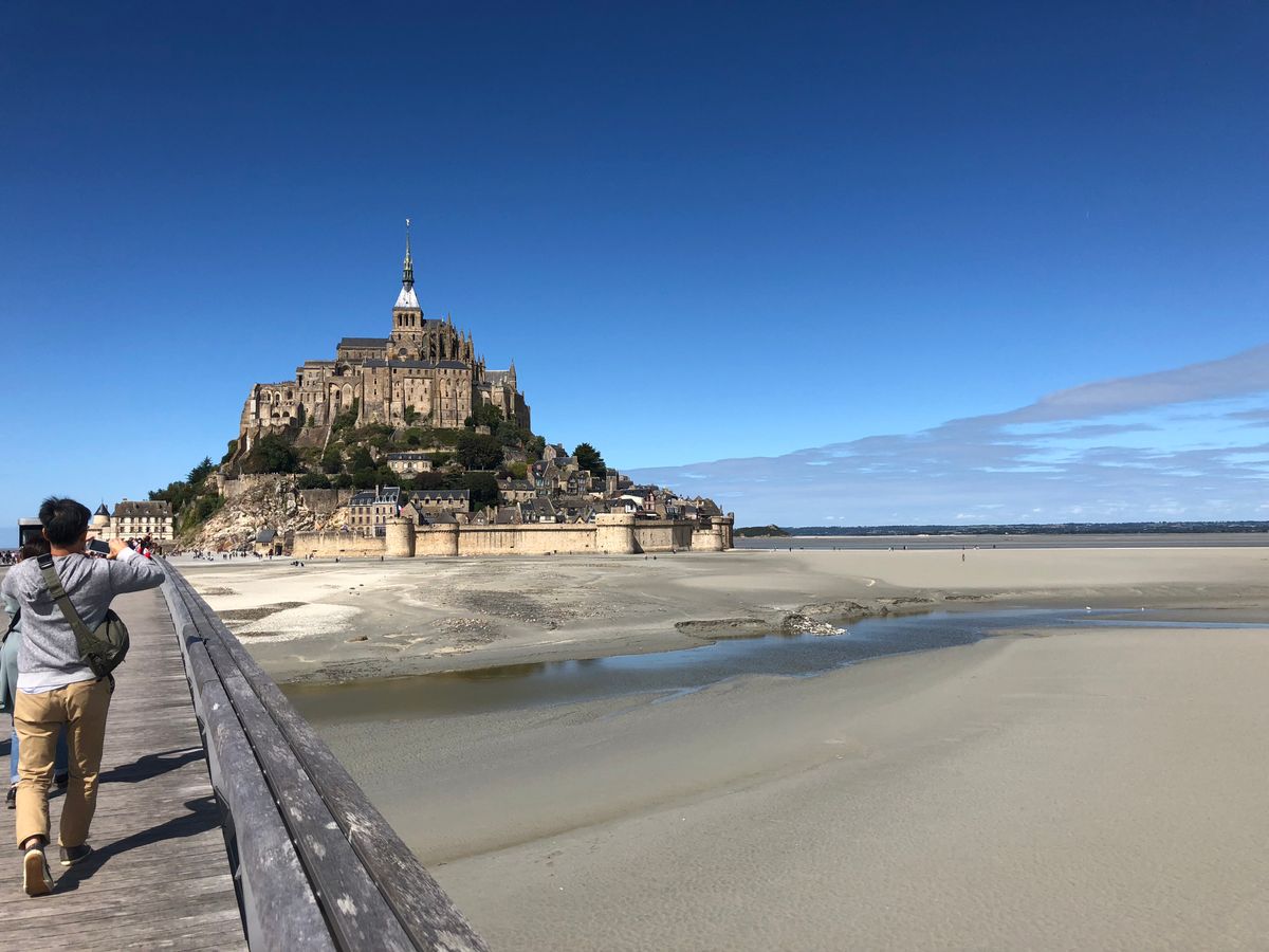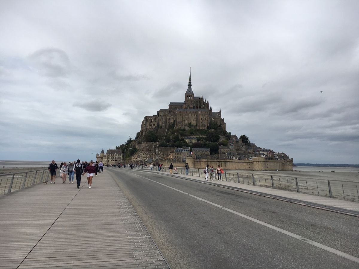 朝早く集合し、バスで行ったモンサンミッシェルは途中雨が降ったりしたんですが、たちまち晴れて最高の景色を見ることができました!途中でよったノルマンディーの村も可愛くって写真映えしましたよ〜