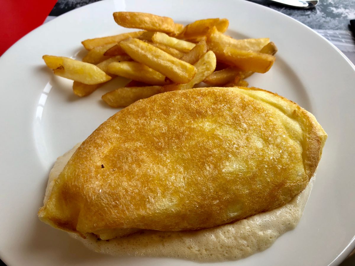 昼食のオムレツの味もまあまあです。一度は経験したいメレンゲに包まれたオムレツでした。