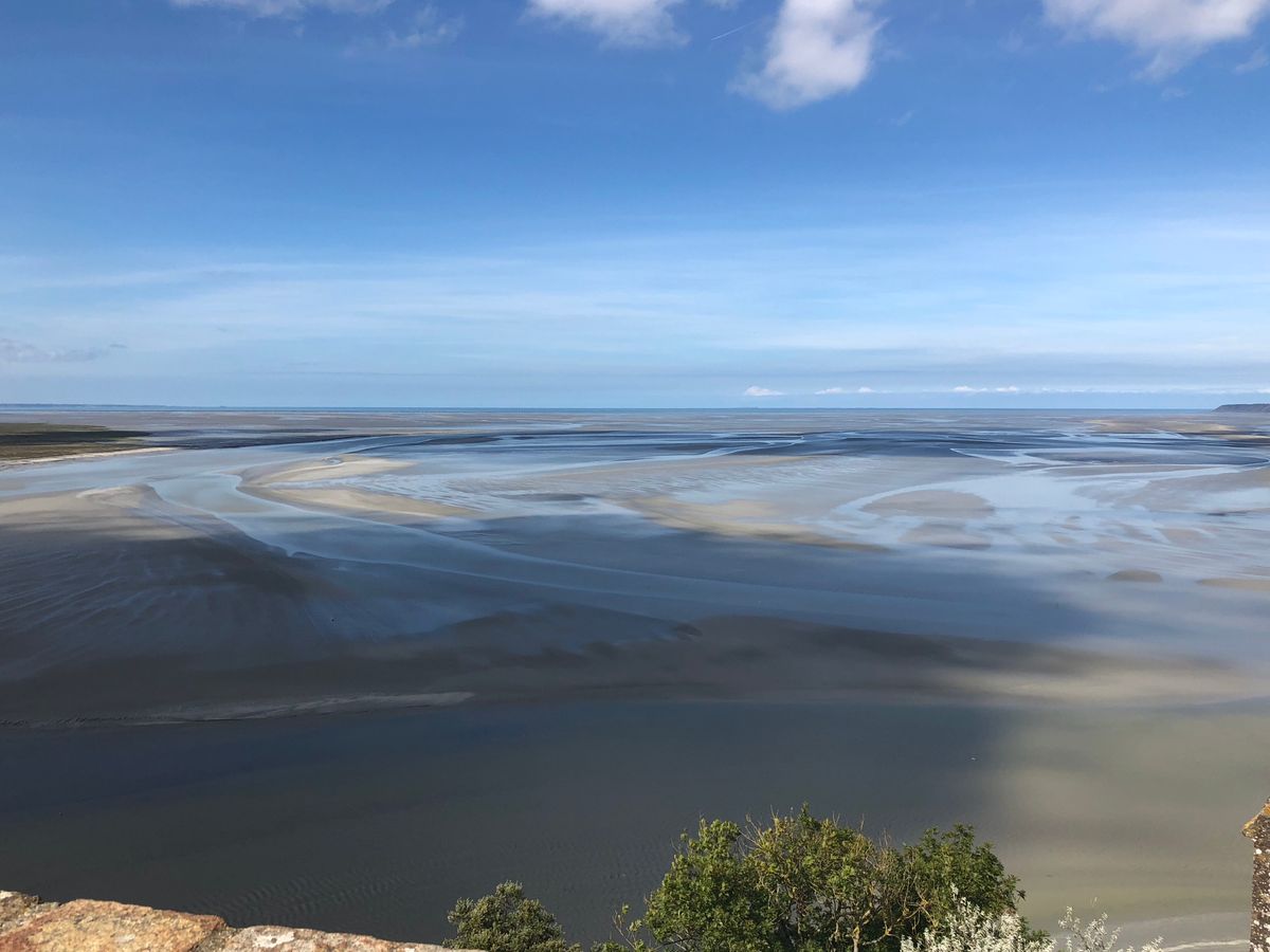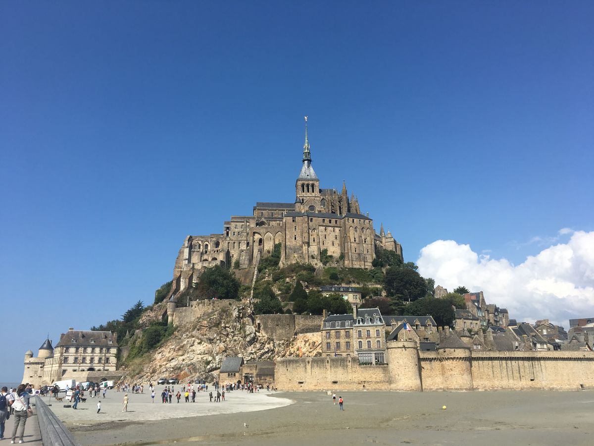 憧れのモンサンミッシェルは天気に恵まれて、遠くの青い海も見渡せるくらいでした。