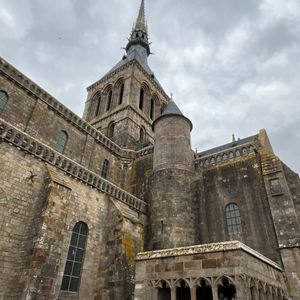 今回モンサンミッシェルへ行くにあたって、干潮時、満潮時の両方の姿を見たいと思い、一泊でのツアーに申し込んだ。宿泊は島外のホテルからモンサンミッシェルが見える「ル ルレ サン ミッシェル」。行きは日帰りの皆さんとバスでモンサンミッシェルまで行き、帰りは翌日のツアーの方達と帰ると言うパターン。ノルマンディーのいなか村は、ブブロン・オン・オージュ。「フランスの美しい村」に認定されている可愛らしい村。添乗員さんに村の案内していただいた後自由散策。いよいよモンサンミッシェルへ。私たちが宿泊するホテルでのランチを申し込んでいた方達もいたので、一緒にホテルまで行き荷物を預かってもらう。着いた時のランチは、オプションで当日に申し込み、私たちは島内の「レ・テラス・ドゥ・ラ・ペ」。こちらは、オムレツの「ラ・メール・プラール」の2号店。添乗員さんがレストランまで案内してくださり、混んでいるのにスムーズに海の見える席に着けた。メニューは指定されたオムレツ、タラのマッシュポテト添え、ティラミス、シードルで€35。この日は、修道院には行かず、島内散策。干潮時でないと行けないであろう聖オペール礼拝堂へも行ってみる。ホテルで夕食を取った後、日没に合わせて出かけてみたが、あいにくのお天気で夕焼けは見られず、コロナ以降ライトアップもないとこと。それでも暗闇に浮かぶモンサンミッシェルは幻想的で素敵だった。翌朝も朝焼け見られるか?と期待したが、あいにくの曇り空。しかし、ホテルの部屋で待機していて苦労なかったので、ガッカリ感も軽減。ツアーでいただいた見学のチケットは、どちらの日でも使えるとのことだったので、朝イチで修道院を見学するため8時半頃ホテルを出て向かう。ツアーでいただいた地図がわかりやすく、モニュメントを探すゲームを楽しみながら見学。じっくり見ていたら、あっという間の2時間。モンサンミッシェル限定のお土産を買う。友人はモンサンミッシェルワッペン付きのセント・ジェームスのボーダーT。これは、ここのお土産屋さん限定商品で島内のセント・ジェームスでも買えない。昼食は、「ラ・メール・プラール」でフワフワオムレツ。昨日の2号店とは違う作り方。食べ比べができて良かった。あとは、城壁を歩いたり、お土産屋さんを見たり。帰りは、昨日と違う添乗員さん。両日とも知識豊富で説明もわかりやすかった。ほぼ時間通りにパリに帰着。充実した一泊ツアーとなりました。