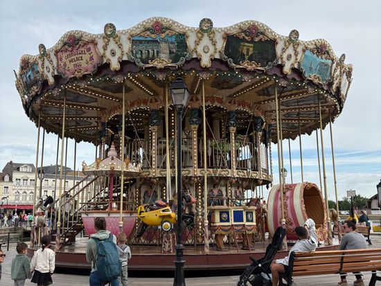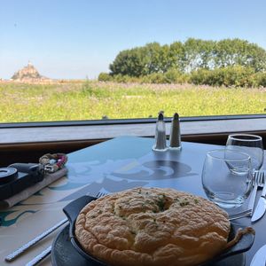 モンサンミッシェルは予想していたよりも素晴らしい景色でした。ちょうどパリオリンピックで展示された機械の馬が訪問した当日から展示されており、すごく良かったです。オムレツも美味しいですが、ムール貝や世界で最も有名なブランドラム『プレサレ』を食べることをお勧めします。