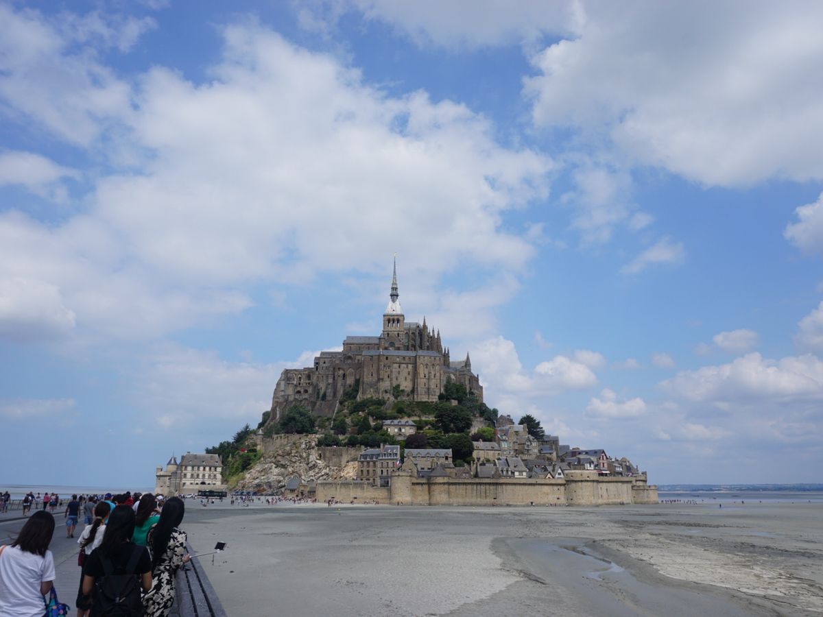 あと、経験して感じたことは、モンサンミッシェルへは1泊2日で行くべきです!片道約4時間を1日で往復するのはかなりきつかったです。滞在時間も短く物足りませんでした。それから、夏のお昼は干潮のことが多く、あの水に浮かぶ姿は見られませんでした。もちろん日暮れの様子も見られません。せっかく4時間もかけて来たのならば、お昼のモンサンミッシェルだけでなく、夕暮れ、満潮の時、ライトアップなどの姿も見たいものです。
