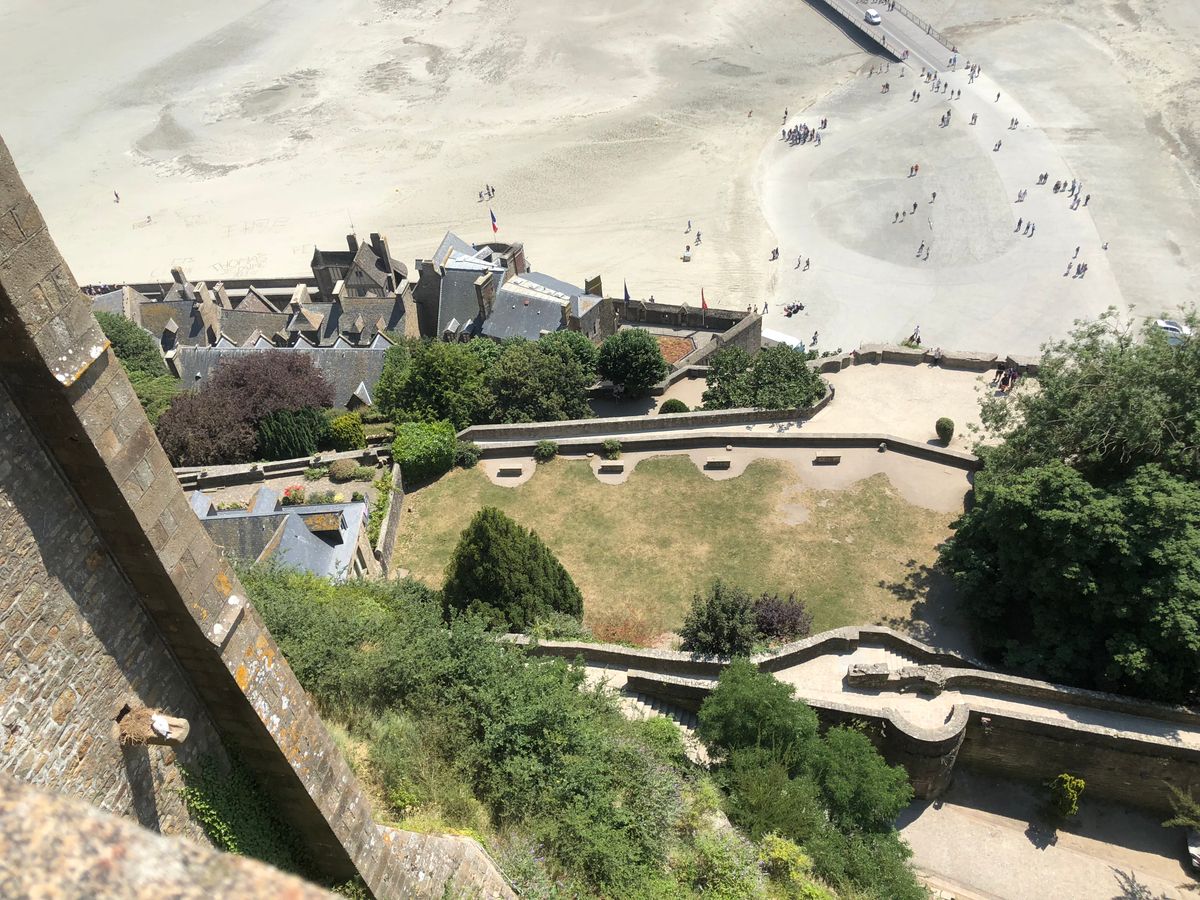 モンサンミッシェルから修道院まではガイドさんが丁寧に説明してくださいます。階段や坂が多く、この日はかなり暑かったので、体力がかなり消耗…!展望台?につくと潮の満ち干き具合やカモメも見れ、風もあったので快適。