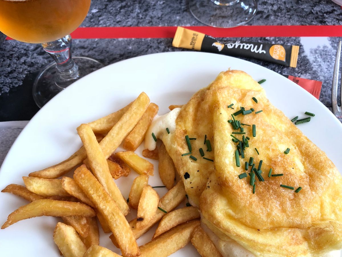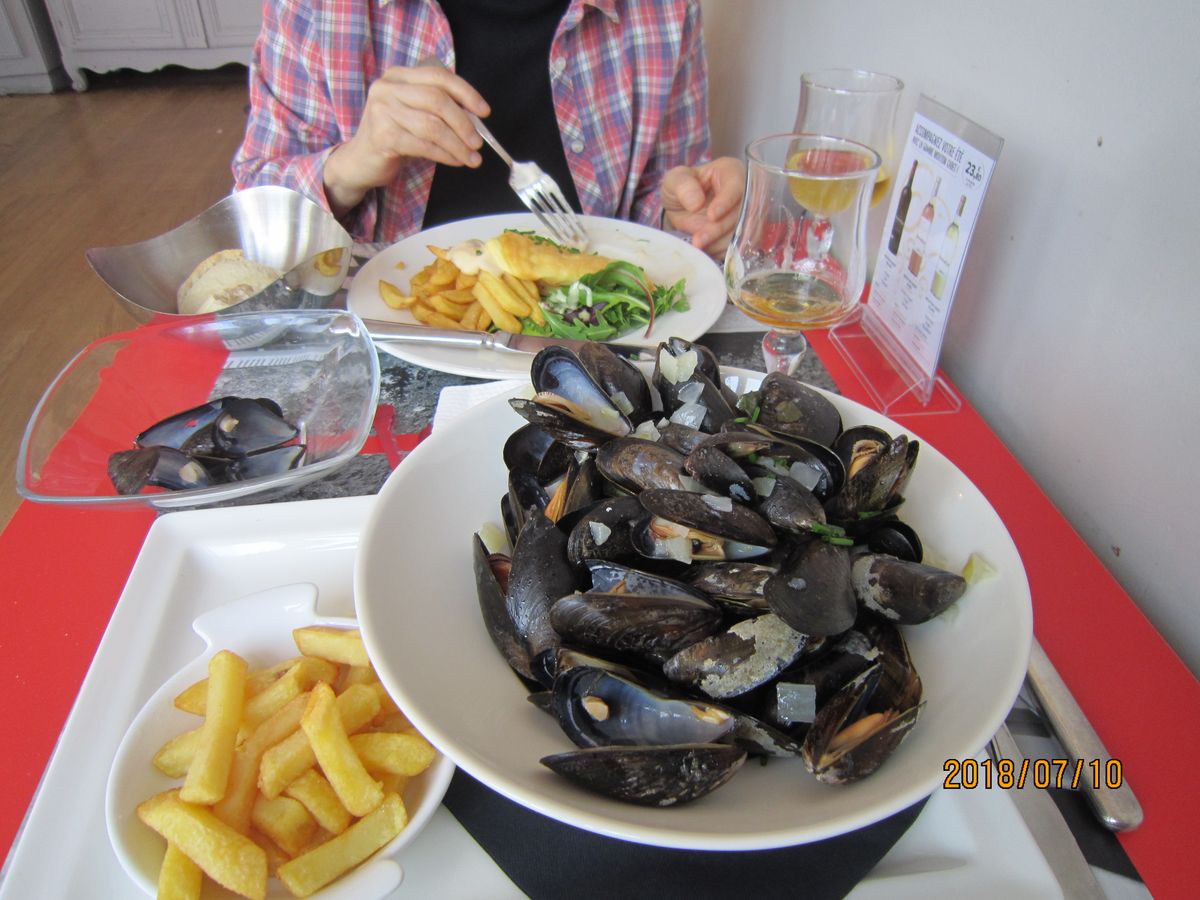 昼食は、定番のオムレツ、ムール貝を注文。ふわふわ柔らかくて、クリームのよう。ムール貝は大量、味もしっかりしていて、どちらも満足。