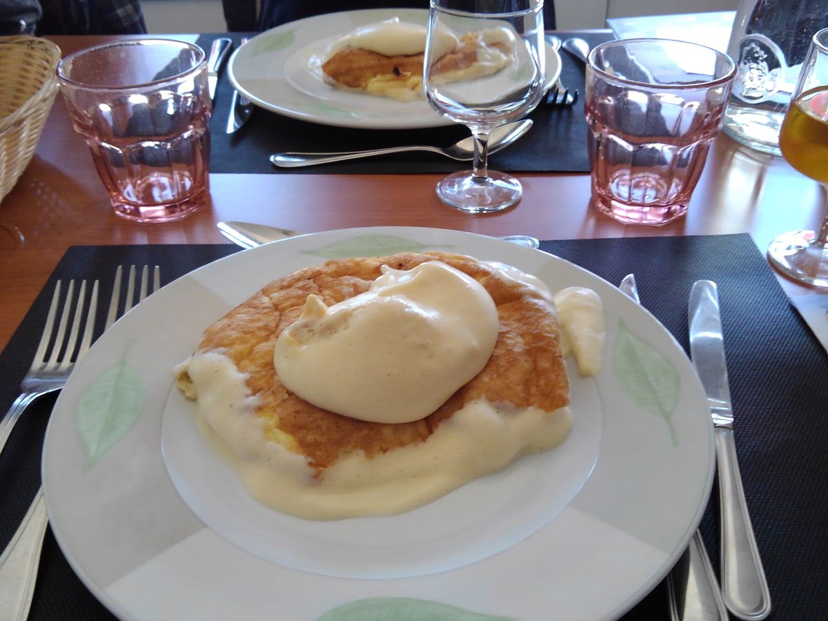 昼頃にモンサンミッシェルに到着して、昼食です。みなさんが酷評されている、オムレツをあえて食しました。私も皆様の意見に同意しますが、やはり、旅は地方の味を楽しむのが本来と思います。ぜひご賞味ください。