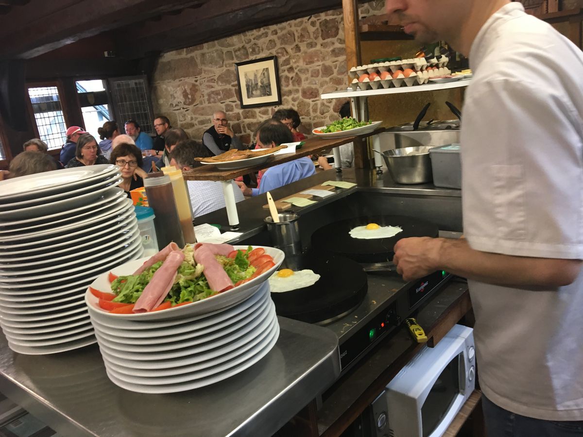 モンサンミッシェルでは、気になってたガレット屋さんで食べたかったので、昼食無しプランにしました。そこのスタッフが意外とテキパキ働いてたので、デザートまで注文してゆっくり食べれました。
