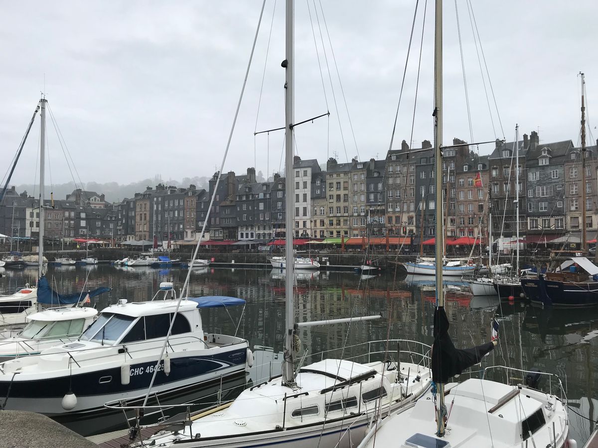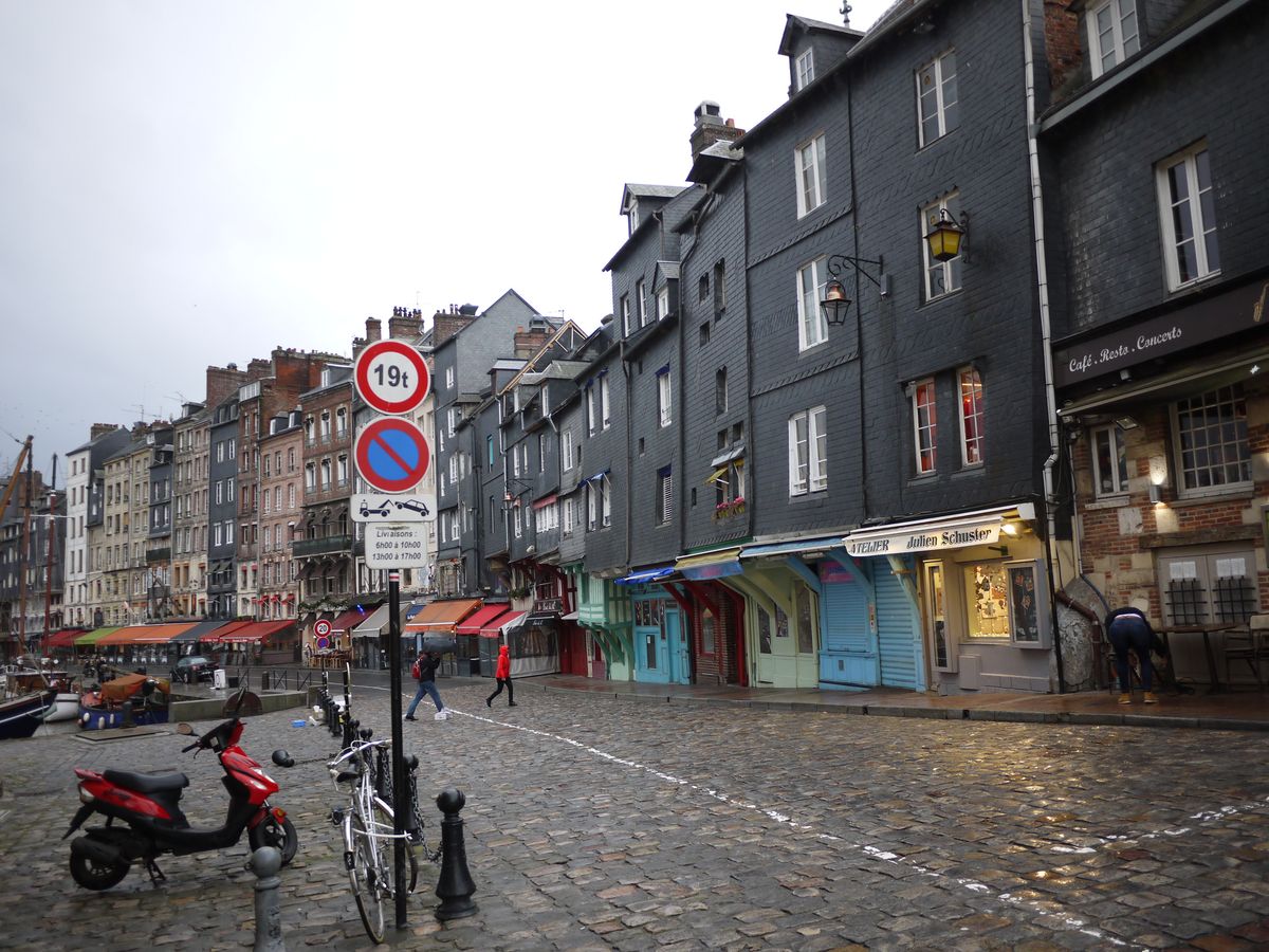 オンフルールに立ち寄った際に予報通りに大雨。オンフルールはとても素敵な場所です。冬場なので観光客はあまりなくお店も閉まってましたが、夏は賑わう観光地のようですね。