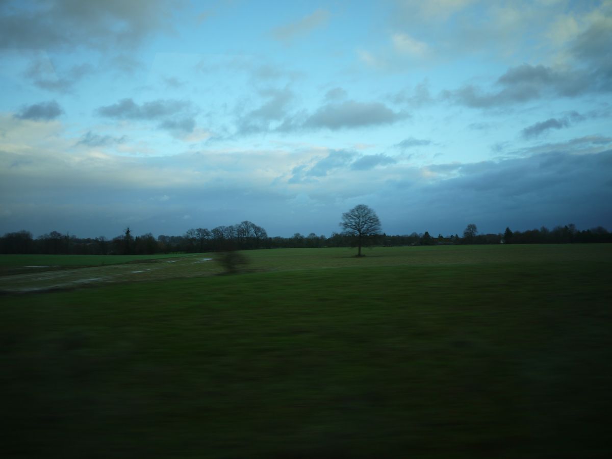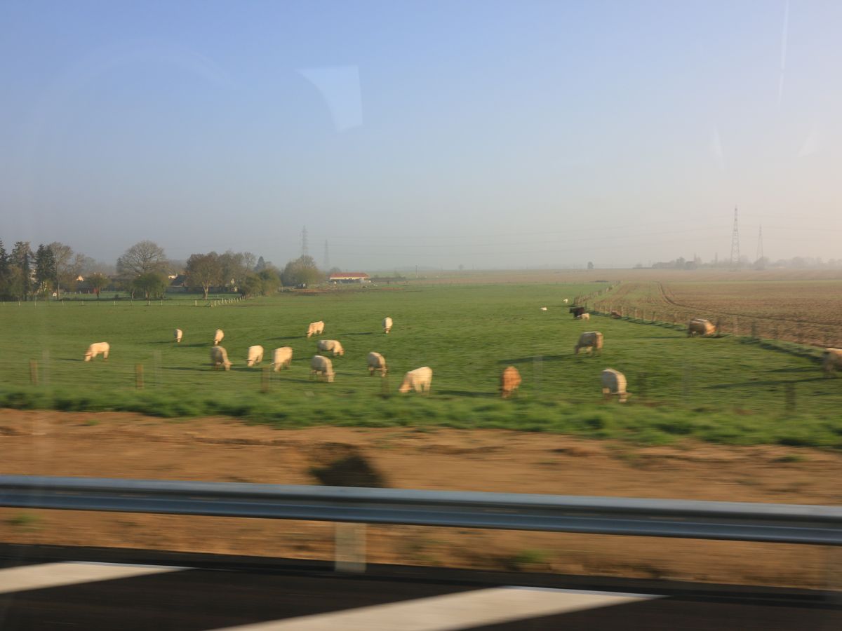 年末で早朝真っ暗で出発。パリ市内を抜けると「世界の車窓から」のような風景の中をひたすら走ります。日本とは違うどこまでも続くきれいな草原と変わった木々、かわいい家を興味深くずっと見ていました。