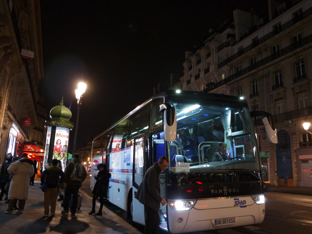 帰りのバスは高速道路の途中でSAのモノプリに立ち寄ってくれました。年末でパリに戻ってもお店が開いてないということで助かりました。パリ市内に戻るとエッフェル塔がキラキラしててとても綺麗でした。