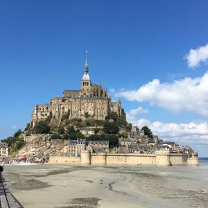 憧れのモンサンミッシェルは天気に恵まれて、遠くの青い海も見渡せるくらいでした。