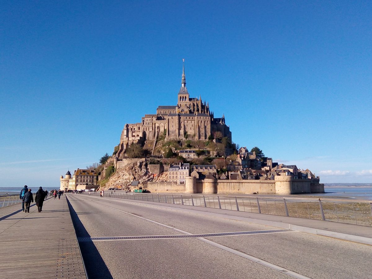 天気が良くて最高でした。モンサンミッシェル自体は1時間30分で見れます。もし歩いて移動する場合は帰りより行きをお勧めします。