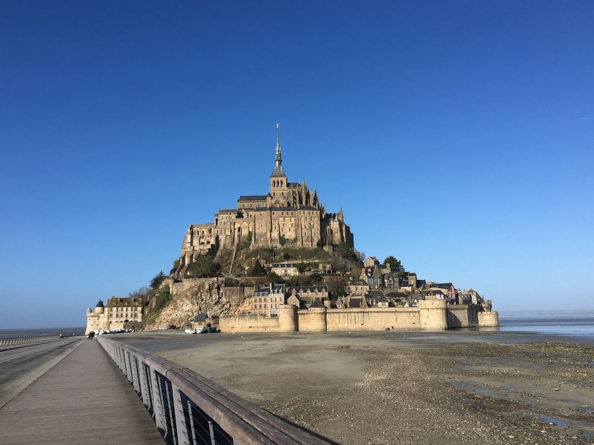 モンサンミッシェルでの透き通るような青空、本当に素晴らしいですね。