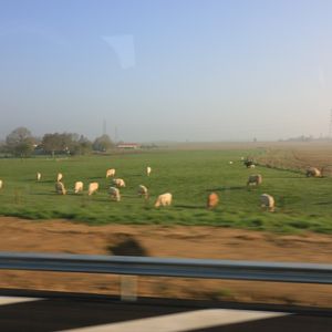 年末で早朝真っ暗で出発。パリ市内を抜けると「世界の車窓から」のような風景の中をひたすら走ります。日本とは違うどこまでも続くきれいな草原と変わった木々、かわいい家を興味深くずっと見ていました。