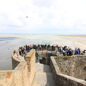 パリから350キロ、日本で言えば東京名古屋間位の距離があり、ツアーバスを選択して良かったと思います。朝7時集合でギリギリになりがち。日本人向けツアー会社が付近に2社あるので、集合場所を間違えないように。バスの中では案内を聞き、ウトウトしてる間に、窓からモンサンミッシェルの遠景が見え始め、車内では感嘆の声が上がりました。橋を渡りながら、モンサンミッシェルに近づいて行く時は、胸が高鳴り、曇りの日でしたが、それも良しと感じました。