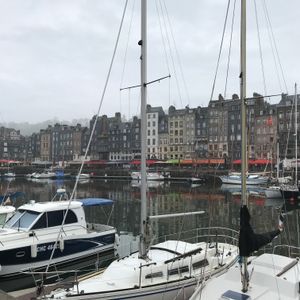 オンフルールに立ち寄った際に予報通りに大雨。オンフルールはとても素敵な場所です。冬場なので観光客はあまりなくお店も閉まってましたが、夏は賑わう観光地のようですね。