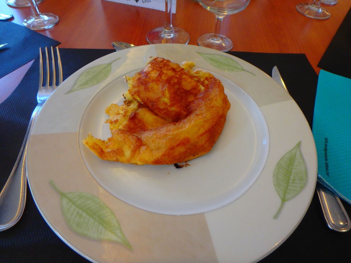 現地に着く直前に、古くから伝わるホンモノのオムレットを昼食に食べることができた。卵だけを永遠かき混ぜて調味料の一切を使わない、フワフワモコモコの卵料理だった。微かな塩味は焼くときに使った塩バターのもの。非常にいい経験だった。