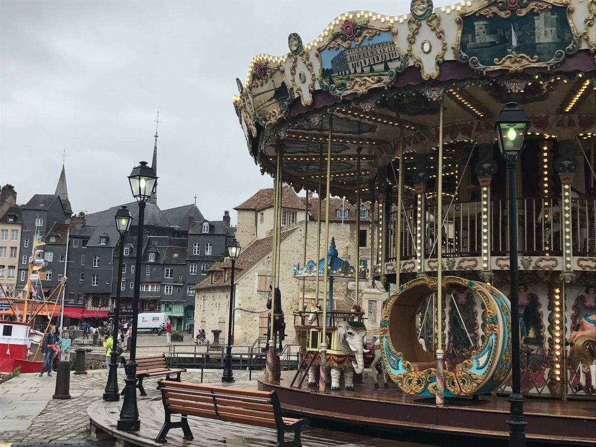 途中でオンフルールで散策兼トイレ休憩。トイレは有料ですが、キレイだから良しです。オンフルールは、港と建物とヨットの風景がとても素敵でした(*^_^*)