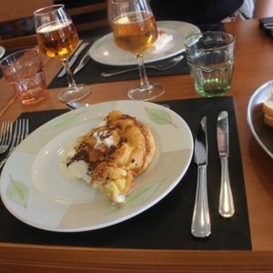 現地に着く直前に、古くから伝わるホンモノのオムレットを昼食に食べることができた。卵だけを永遠かき混ぜて調味料の一切を使わない、フワフワモコモコの卵料理だった。微かな塩味は焼くときに使った塩バターのもの。非常にいい経験だった。