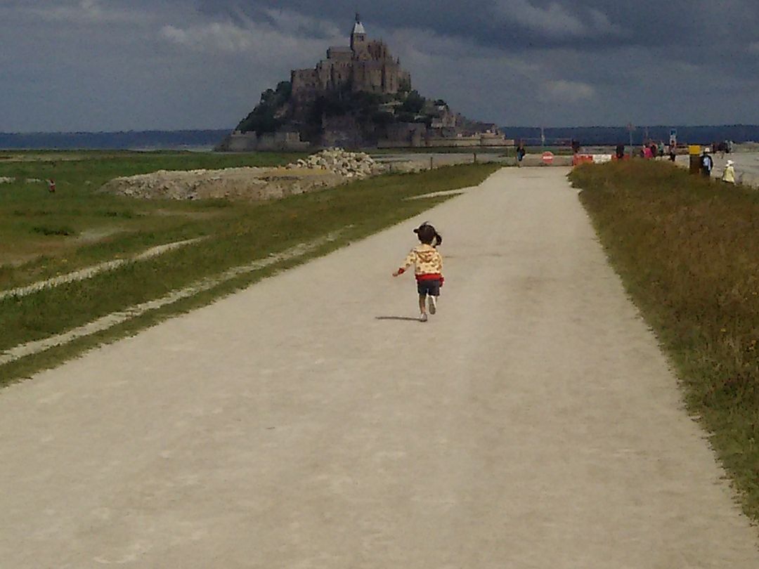 7年前、子供がまだ小さい時に、家族3人でモンサンミッシェルに行こうとしましたが、遠過ぎるかと断念した経緯があります。今回の、念願叶ってのモンサンミッシェルはお天気も最高!ガイドさんのお話も大変興味深く聞き入ってしまいました。現地は、思っていたより階段が多く、また道幅もとても狭いので、ストローラーが必要な赤ちゃんや幼児が一緒だと大変そうだなと感じました。