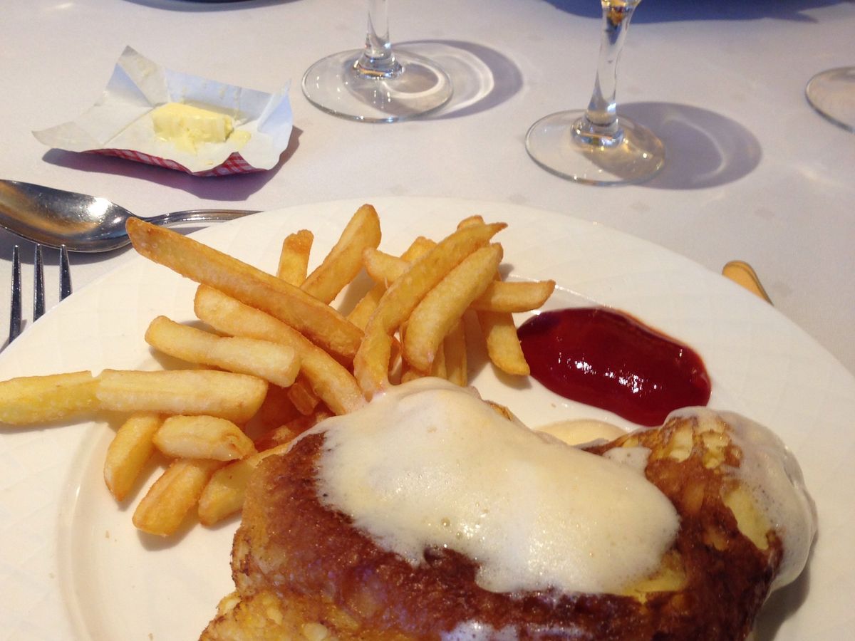 モンサンミッシェルでの食事は島に渡る前のレストランなので、モンサンミッシェルが一望でき、料理もおいしかったです。ふわふわオムレツが前菜で量が少なかったので、大きすぎず丁度良いサイズでした。