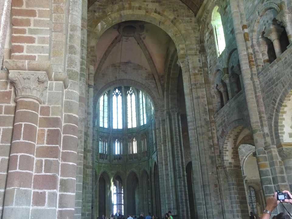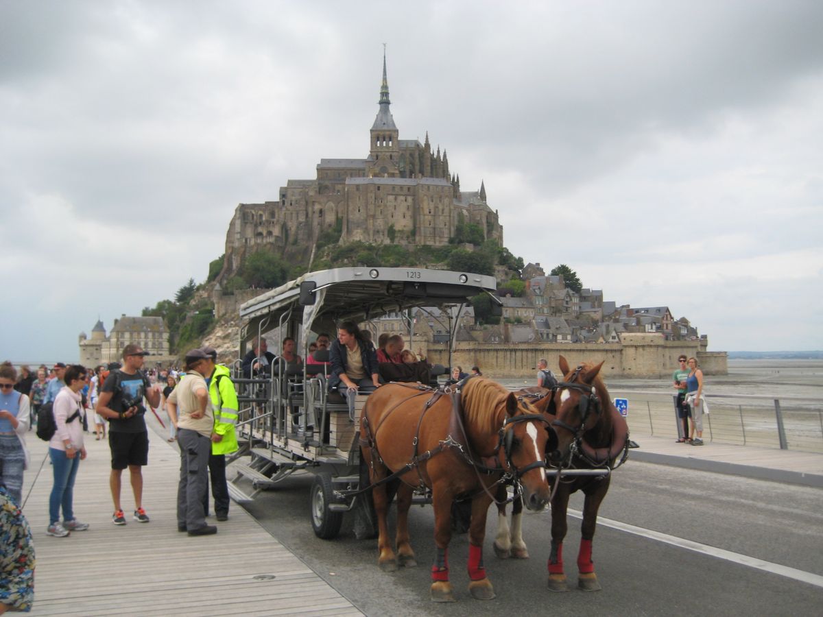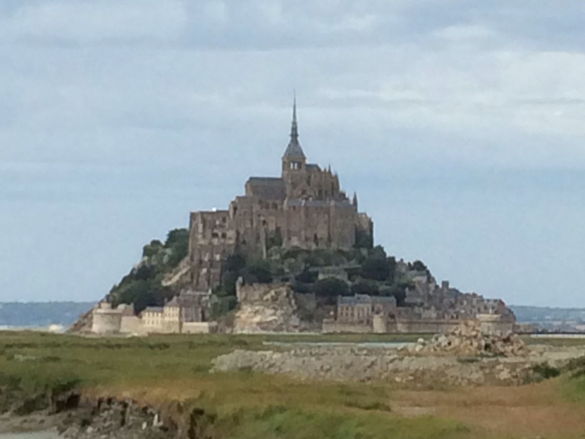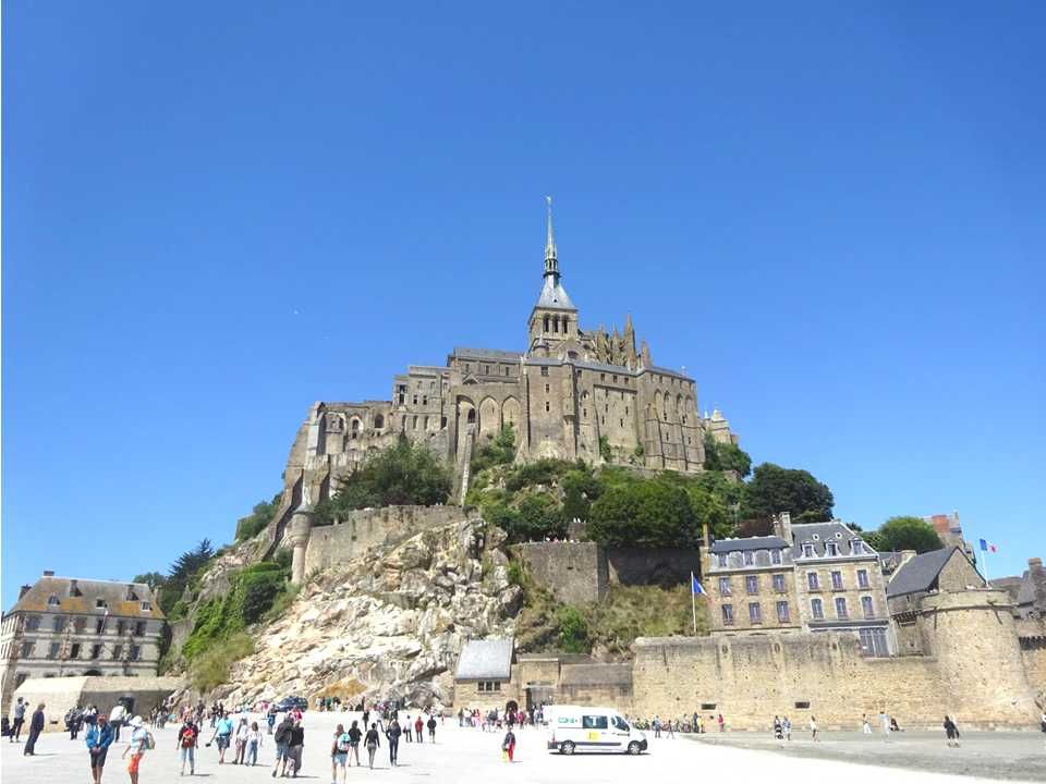 バスの長い乗車となるツアーであったが、途中オンフルールという港町でフランスのポートや住宅など風景見学ができました。モンサンミッシェルに渡る前にオムレツの昼食をレストランでとり、モンサンミッシェルに渡りました。風がかなり強い日でしたが、細い参道に入ると風はなくなりました。見学者が多くて、参道は人人でごった返していました。寺院に登って、最も高いところからの展望はとてもよく、初めてのモンサンミッシェルを堪能、満足できました。