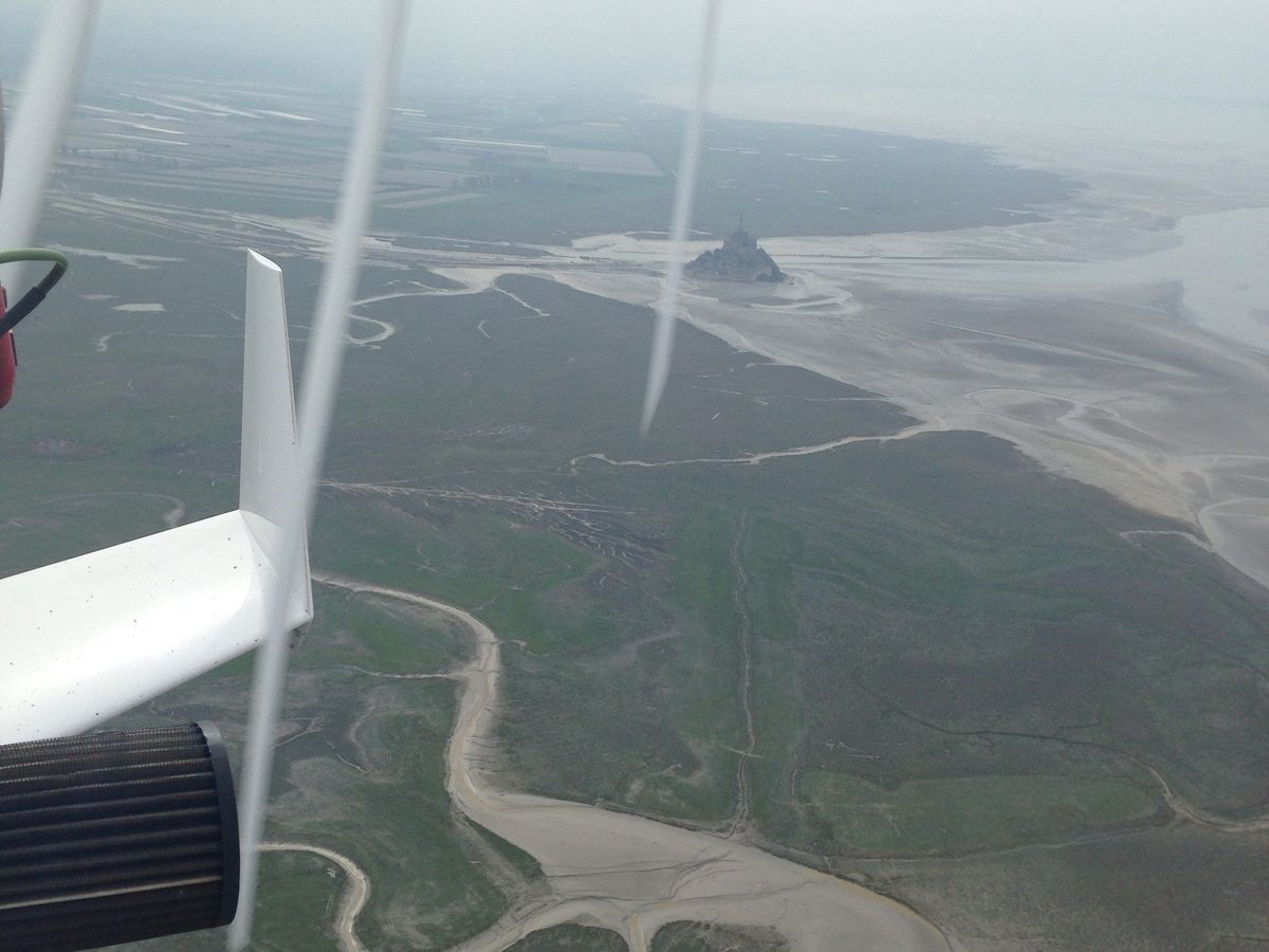 生憎の天気でモンサンミッシェル自体の綺麗さはイマイチでした。ただ、ヘルメット一つベルト一本で空に飛び立つのはとてもスリリングで楽しかったです。