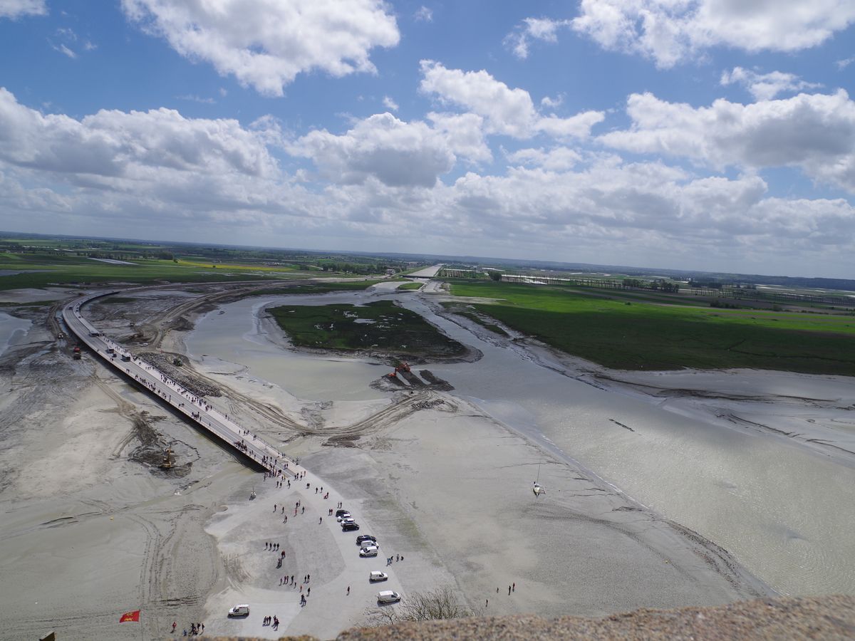 一度は行ってみたかったモンサンミッシェル護岸工事中とはいえ満足でした。駐車場からシャトルバスが出ていますが写真を撮るなら行きは歩くことをおすすめします。車中はガイドさんの説明も丁寧でトイレ事情など気を配られていたことには満足ですが車中で購入したランチのチケットを使っての食事は特別お値打ちでもなく何より指定された島内のレストランのサービスの悪さがマイナス点です。ガイドさんもそのお店の事情をご存じな感じでしたのであらかじめ情報を流してくださればと感じました。ノルマンディーの田舎村も朝早いせいかトイレ休憩程度であまり長居する場所では無いように感じられました。全体的には満足ですがやや不満な点も2点ありましたから普通評価とさせていただきました。