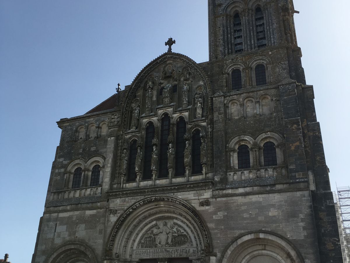 ヴェズレーに到着すると、中世から続く村を抜け、マドレーヌ寺院へ。寺院は少しずつ改修作業を行っており、現在は正面のタンパンは見ることは出来ませんでしたが、横口から内部への見学ができ、ロマネスク様式の見事な聖堂を見ることができました。古来より続く、サンティアゴ・デ・コンポステーラ巡礼地の始地であり、2次大戦後各国の兵士がこの地まで運んだ木の十字架、地下に下ると、聖マドレーヌの聖遺物、沢山のエピソードをガイドさんから伺う事ができました。