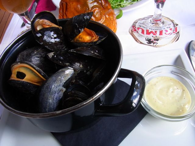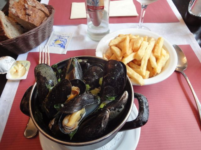 奇跡的にバッグ内に現金が少しだけあったので念願のムール貝と白ビールでランチを取り、チョコを買うこともできました。