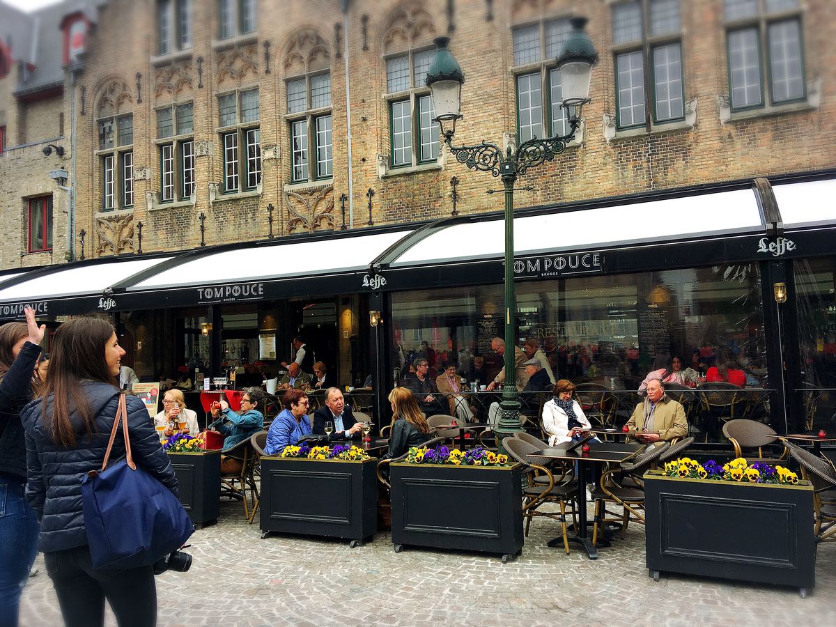 ブルージュに到着すると、ガイドさんの案内で、街の広場まで行き、そこで自由行動になりました。ランチはついていません。また、5/1は祝日なので、閉まっているレストランもあると聞いていましたが、多くの店が営業を行なっているように見えました。