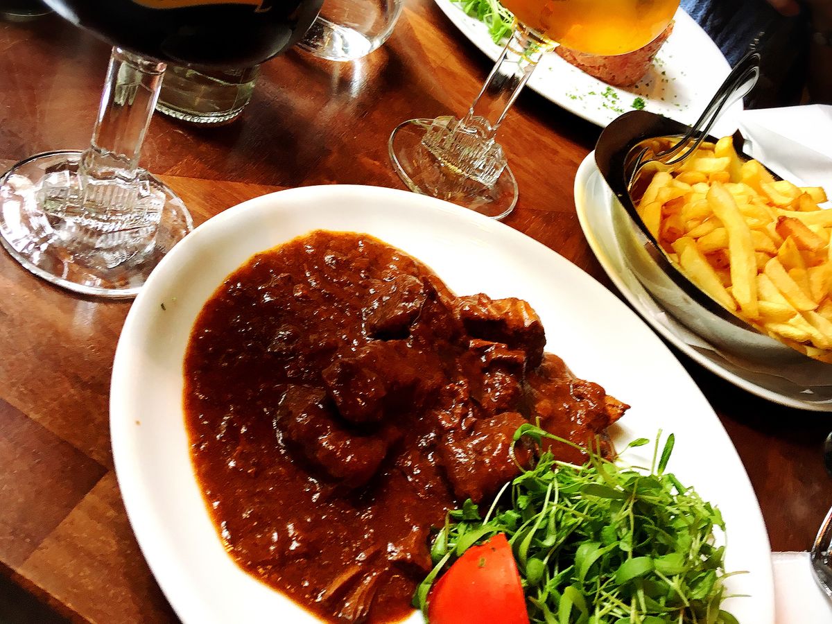 ご飯はガイドさんにオススメを聞いて入った場所で、ムール貝のワイン蒸し、カルボナード(牛肉のビール煮込)、小エビのコロッケ+ベルギービールを堪能!