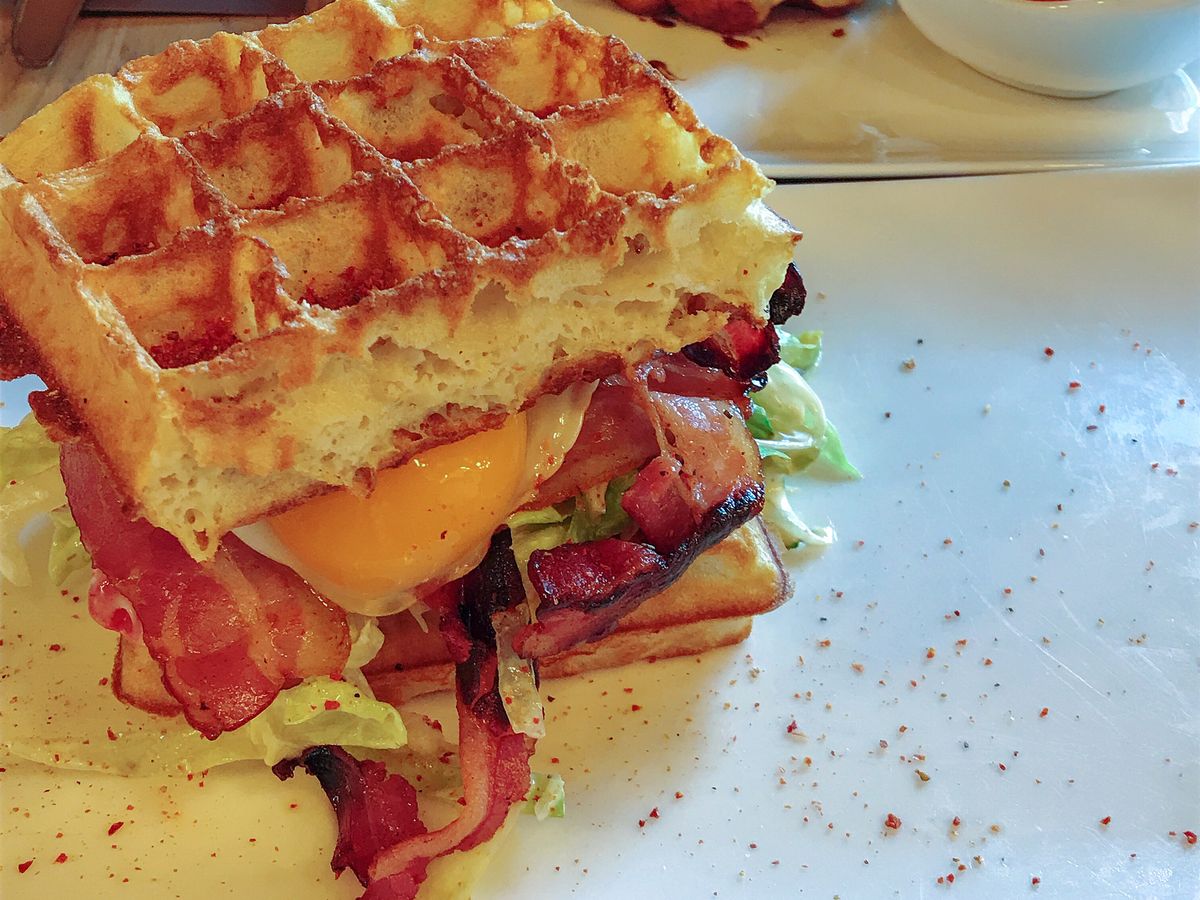 食事はハウスオブワッフルという黒い庇のある(表はテイクアウトのカウンターがあります)カフェでベルギービールと食事系とスイーツ系のワッフルを2人でシェアしました。提供が早くて、サッと食事したい方にはおススメです。