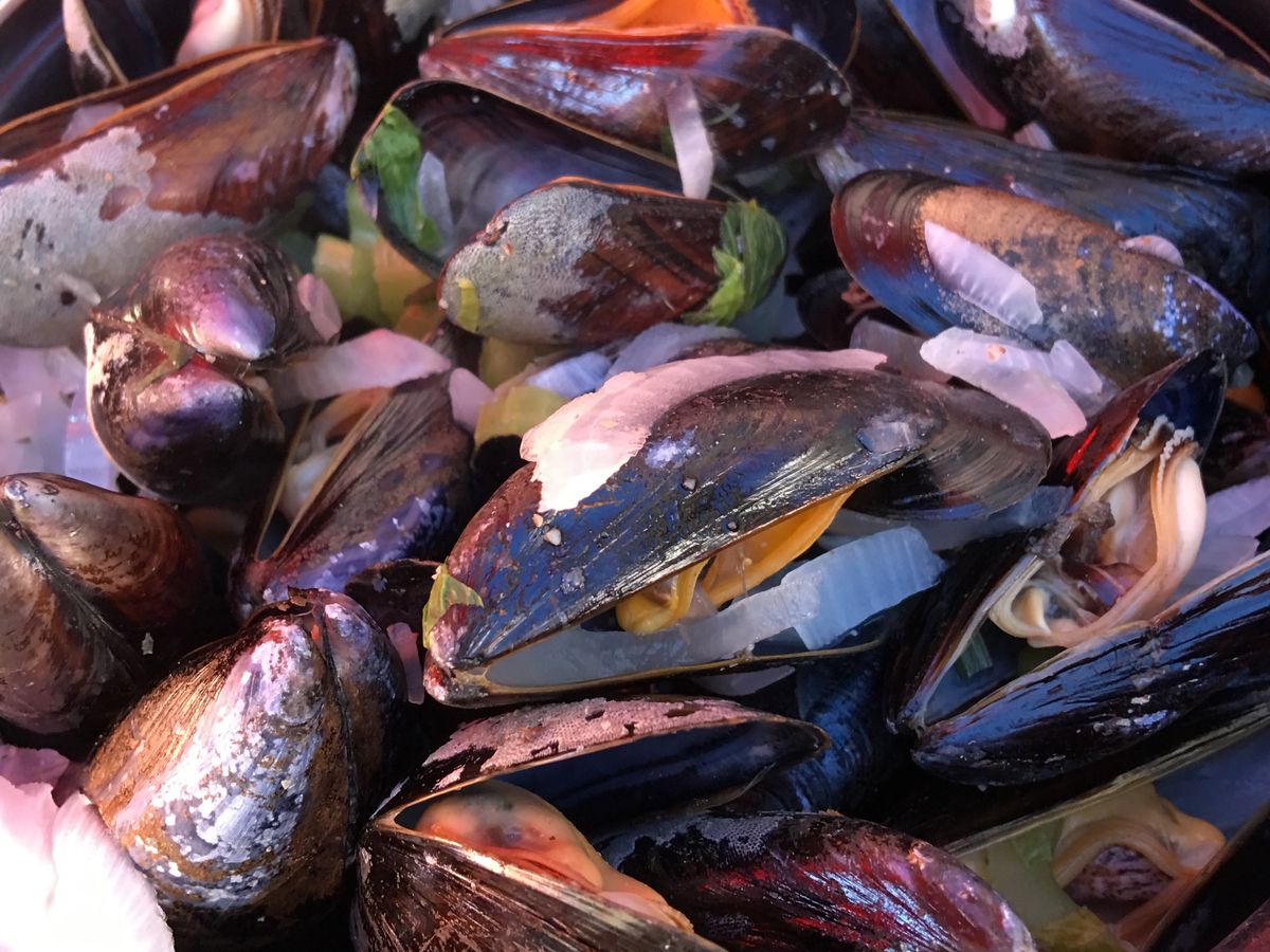 可愛いしまた 眺めがよいから ムール貝とビール フライポテトは最高