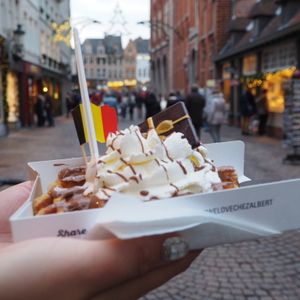 私が行った時はちょうど雪が降った後でしたので、雪化粧した街を楽しめました。ガイドさんに街の中心の広場まで案内していただき、それから2時間半程度のフリータイムとなりました。ランチは広場近くのムール貝の美味しいお店を教えていただき、同じツアーに参加されたご夫婦と、ベルギービールとともに堪能しました。日本で食べるムール貝よりも全然美味しいので、非常におススメです。ランチ後は街をぶらぶら散歩しながら、ショッピングやベルギービールを楽しめました。フリータイムがもう少したくさんあるともっと良いのですが、往復8時間かかるので仕方ないですね。