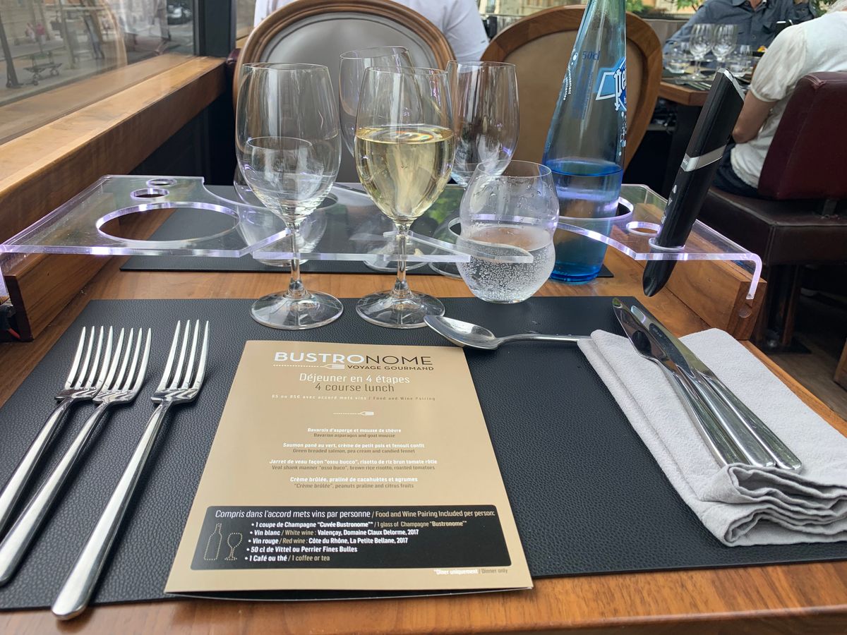 パリ滞在の最後の日に、バストロノームのランチドリンク付きを体験しました。前菜・魚・肉料理・デザートとミネラルウォーター・ワイン白と赤・コーヒーを味わいながら、それぞれの場所の日本語の説明もタッチペンで聞くことが出来て、2時間弱を楽しむことが出来ました。姉との旅行でしたが、二人共ほろ酔い気分で大満足でした。