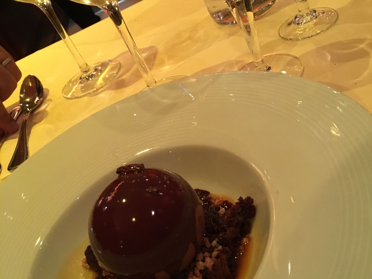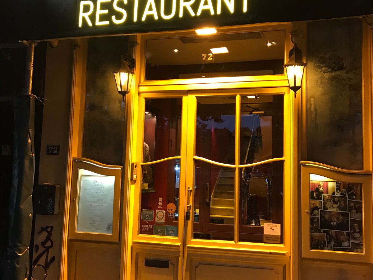 お店は大通りに面していて分かりやすく地下鉄駅から数分で到着、1階か2階か聞かれ空いていたので1階のテーブル席に。何を食べようかメニューで悩んでいた時、たまたま右隣テーブルのサンフランシスコから来た老夫婦と会話、4度目のパリでこのお店のフォアグラと魚がおいしいと言われ注文、食事中のスタッフのオベラも生歌で良かったですが最後のデザートのチョコレートボールはボリューム満点❗気付けば1階はほぼ満席、左隣は地元?のファミリー、日本人は見かけませんでした。