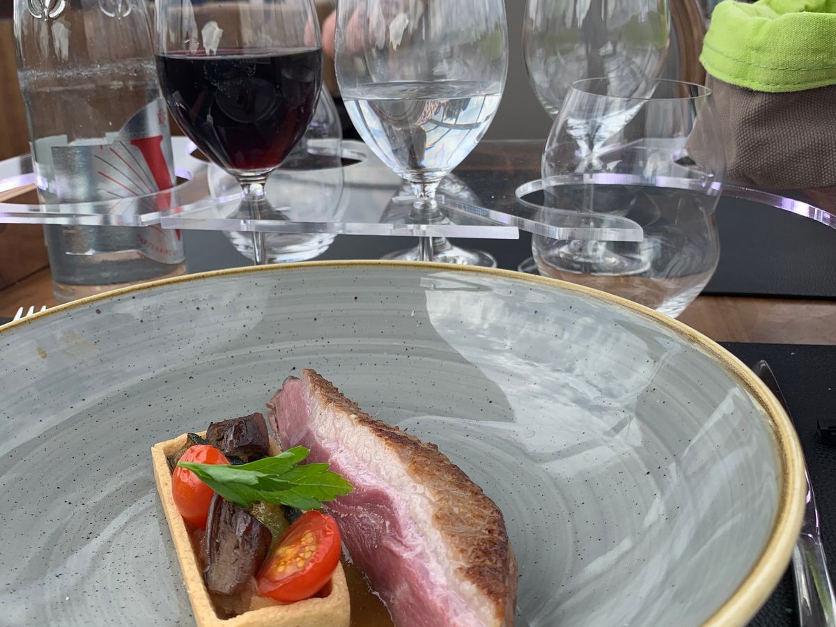 食事は普通に行けば22ユーロのランチコースと同じです。それにミネラルウオーターとワイン(私たちは飲まないのでジュース)と食後のコーヒーが含まれてます。オーダーを取ったウエイトレスに宮殿入園のチケットの話をしましたが「出来ない。」と口コミ通り言われました。困っていたらレストランに入れてくれた長身の男性に伝えるとチケットを持って来てくれました。